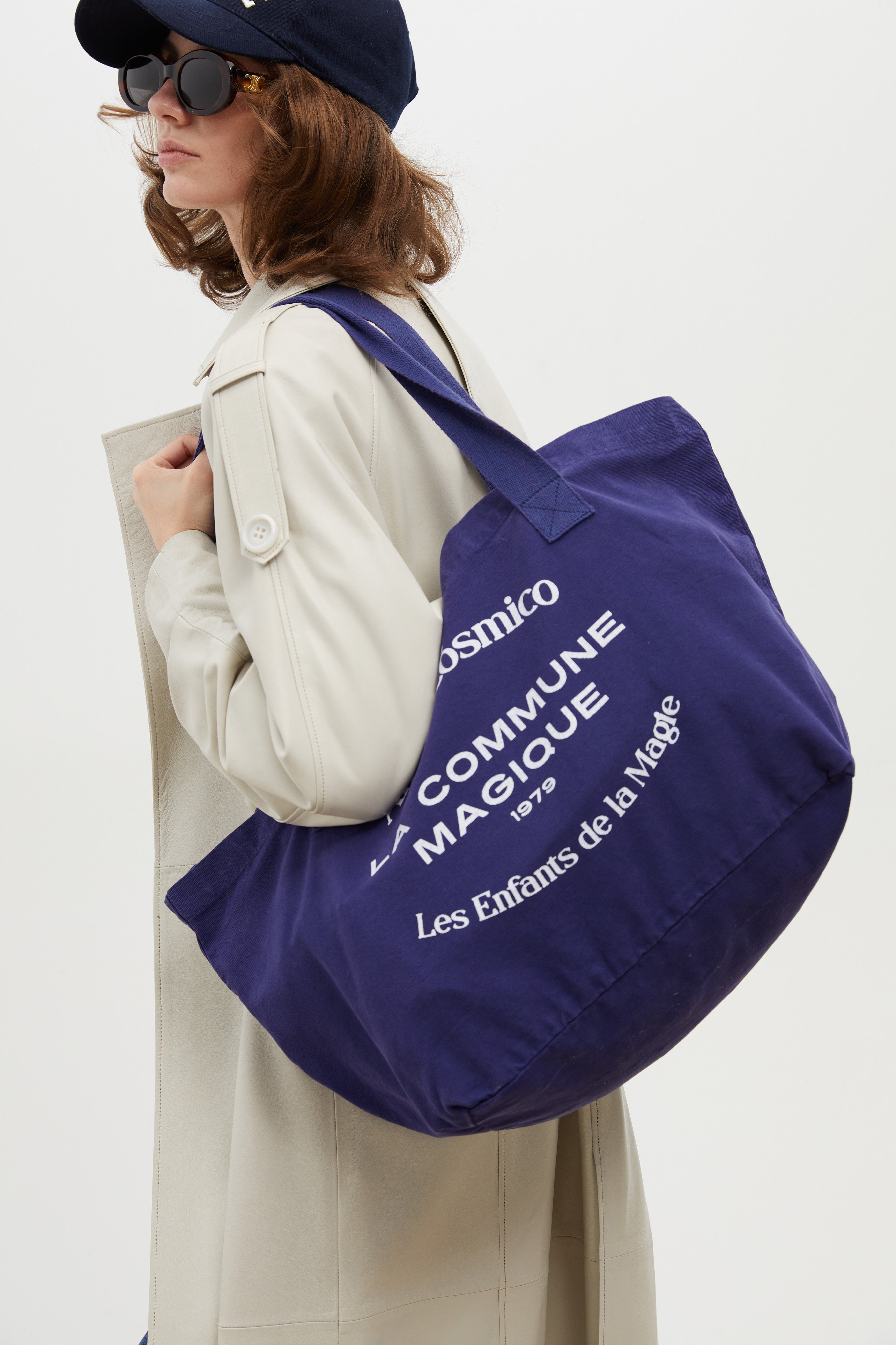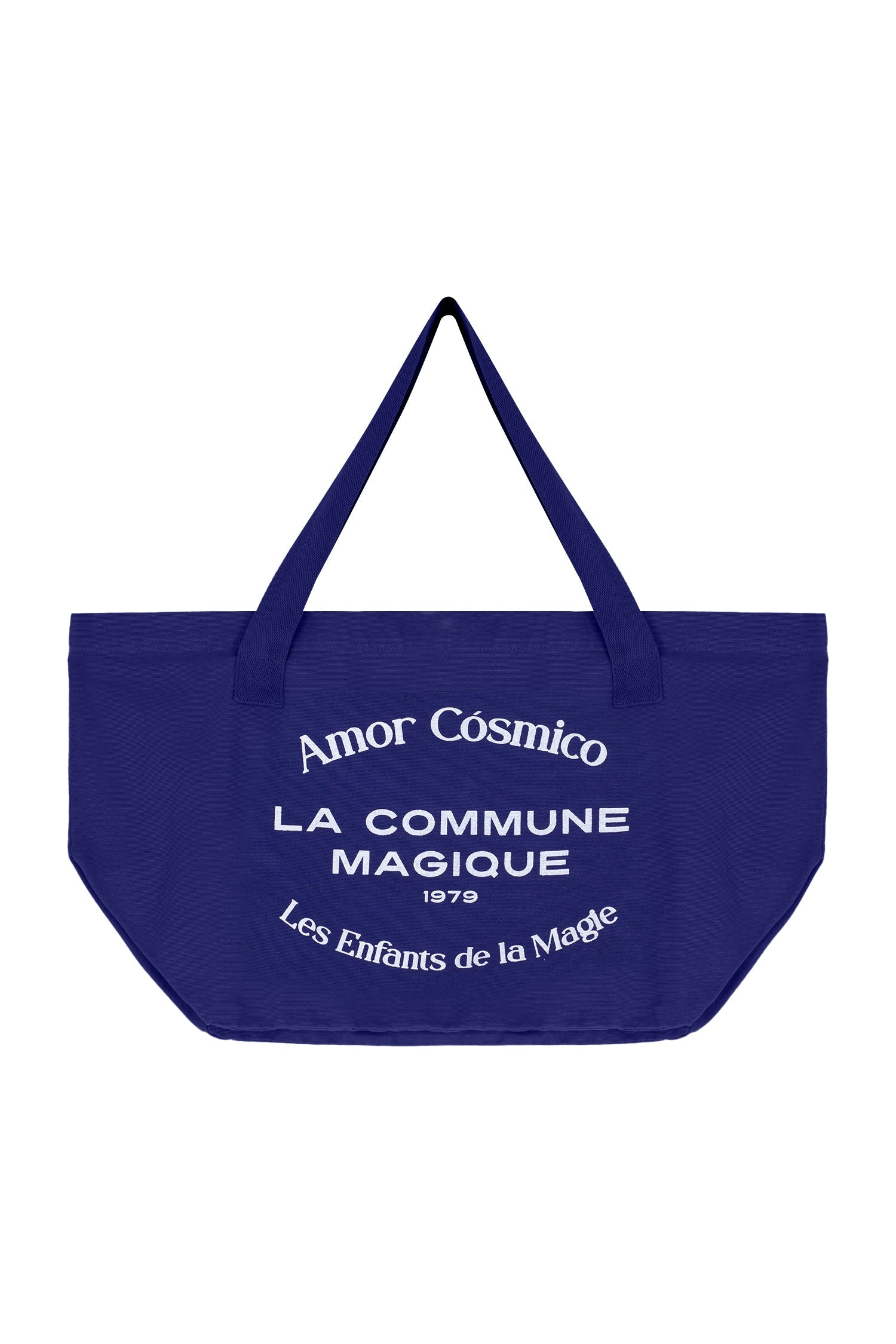 Navy tote bag with white ''Amor Cósmico'' exclusive design, crafted of 100% cotton.