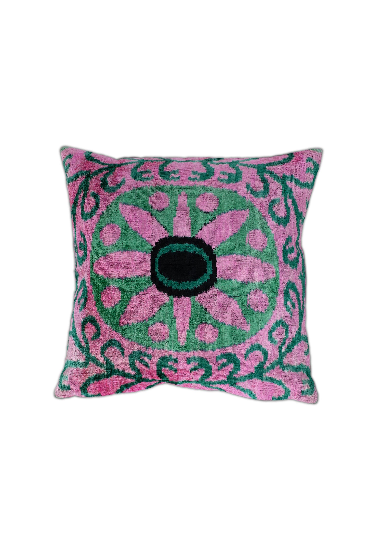 Front side silk velvet, back side cotton fabric decorative cushion. Cushion filling is included.