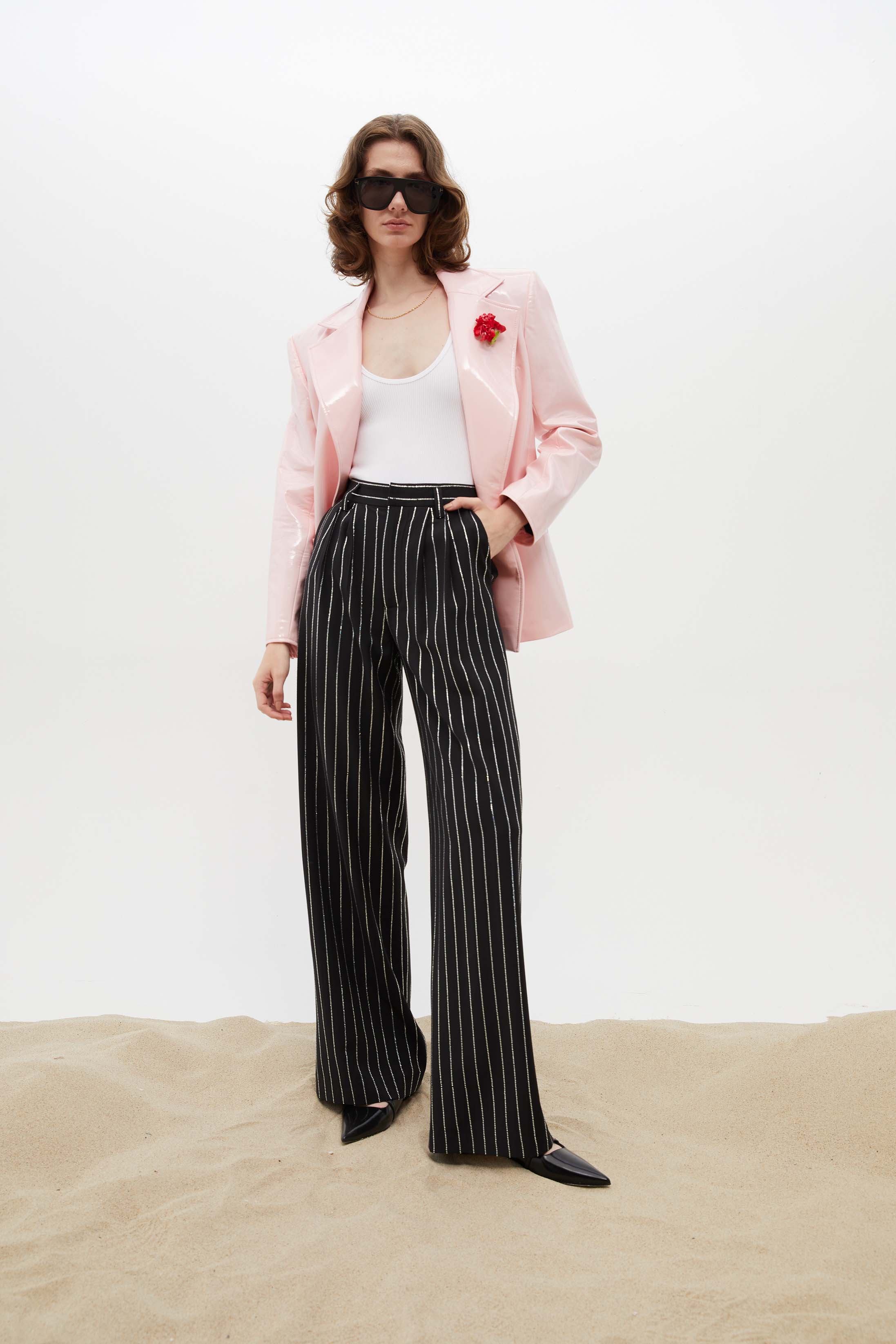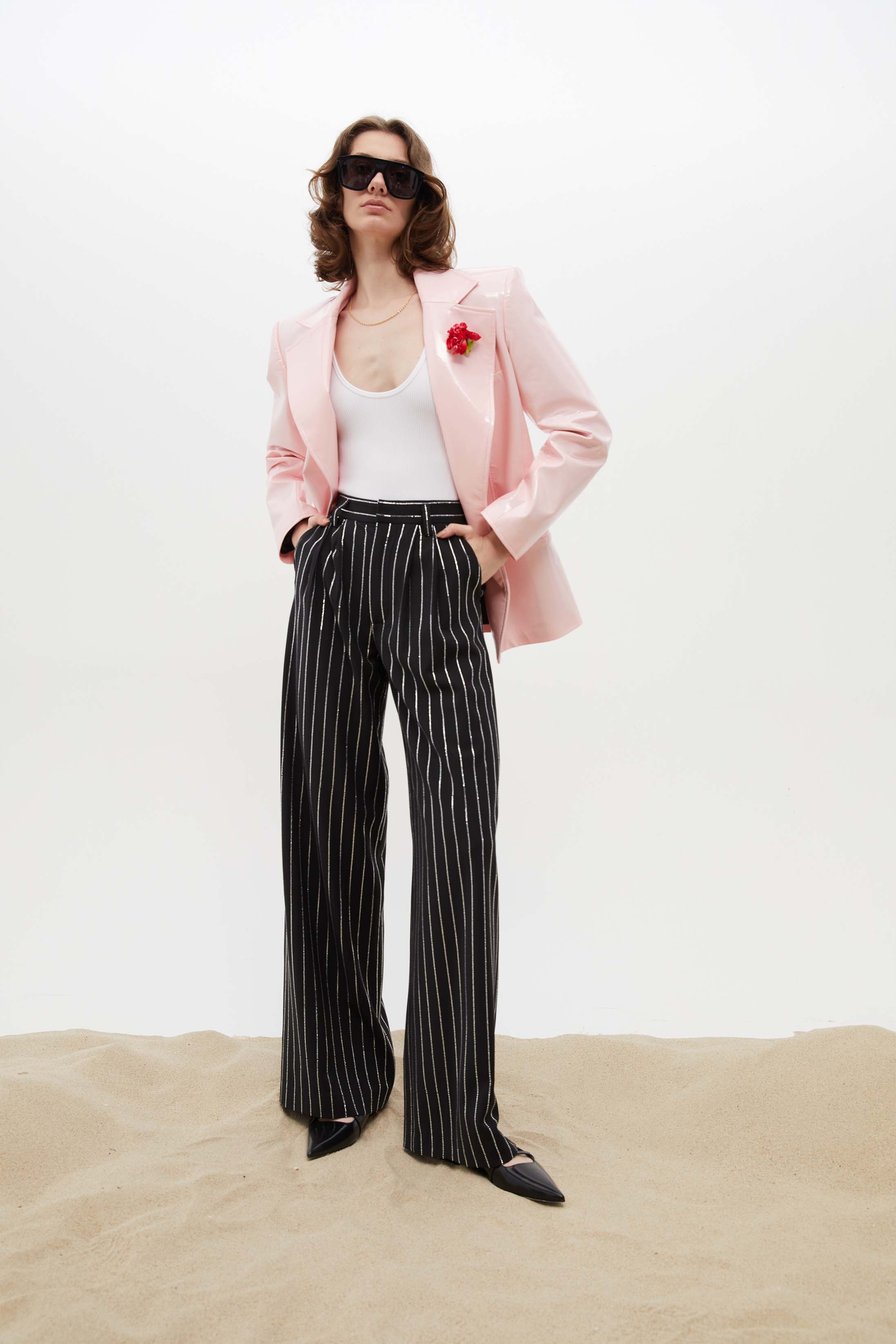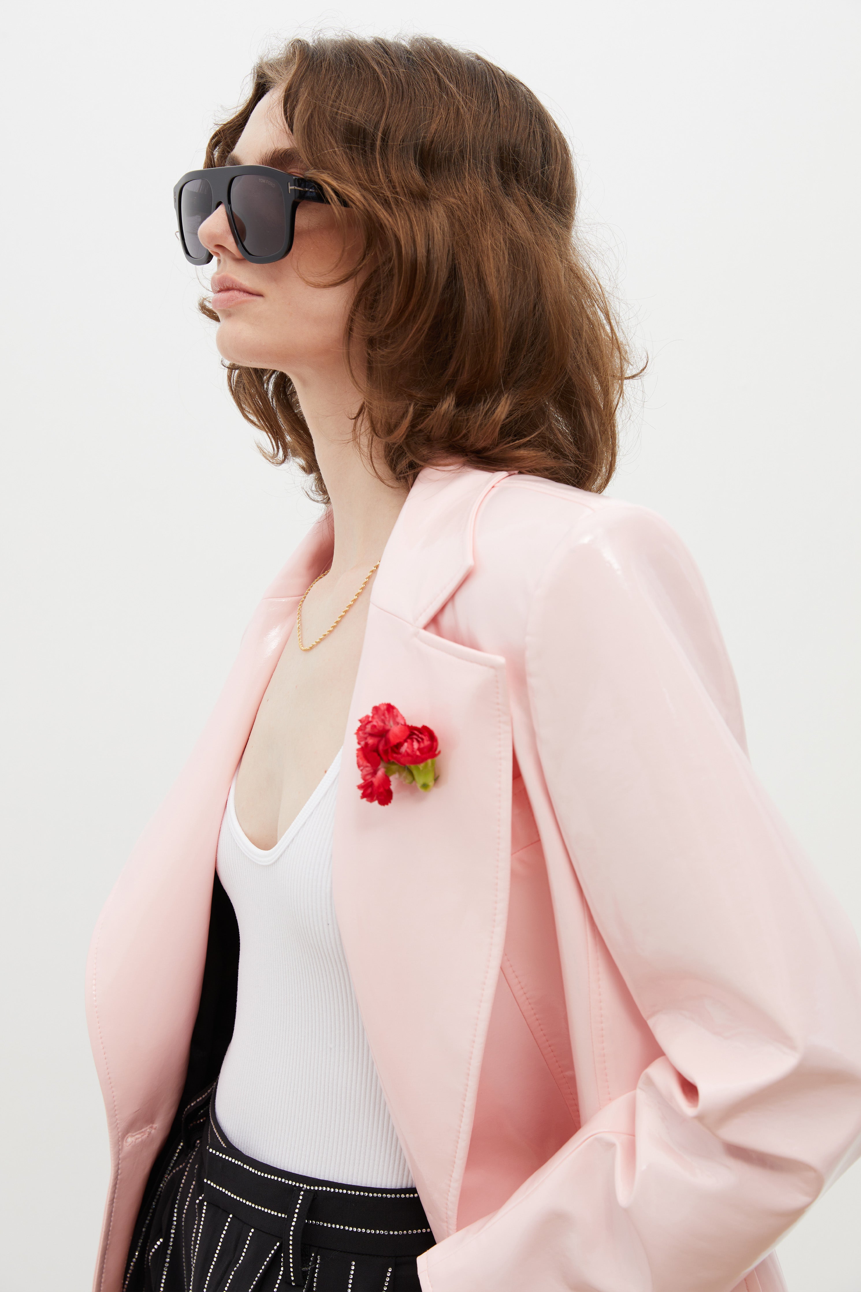 La Commune Magique original pink vinyl blazer with black interior lining.