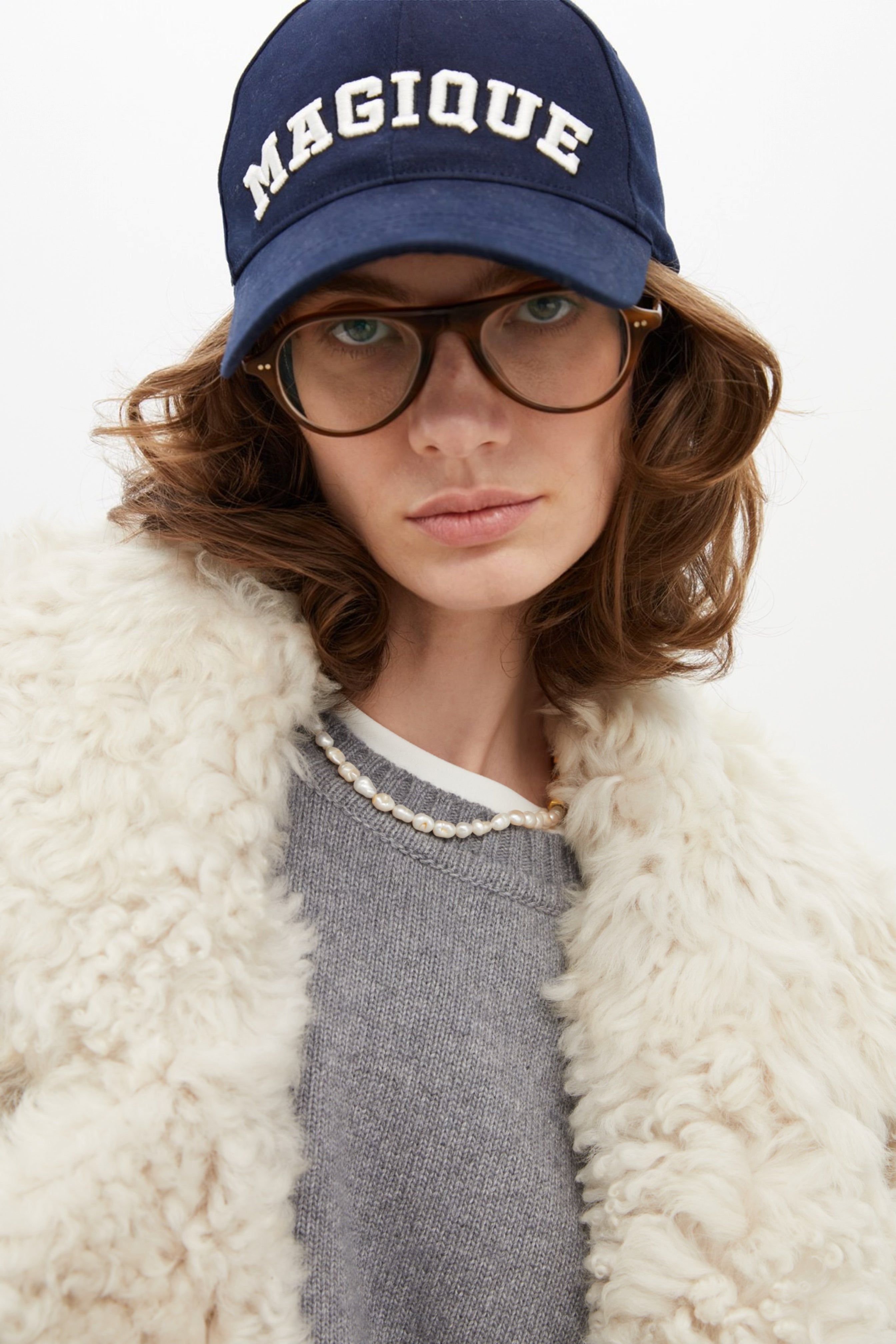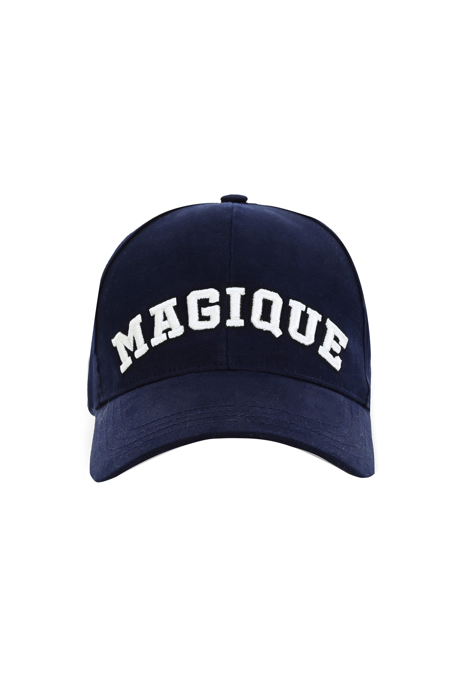 Dark navy baseball cap with signature ''Magique'' branding, crafted of 100% cotton.