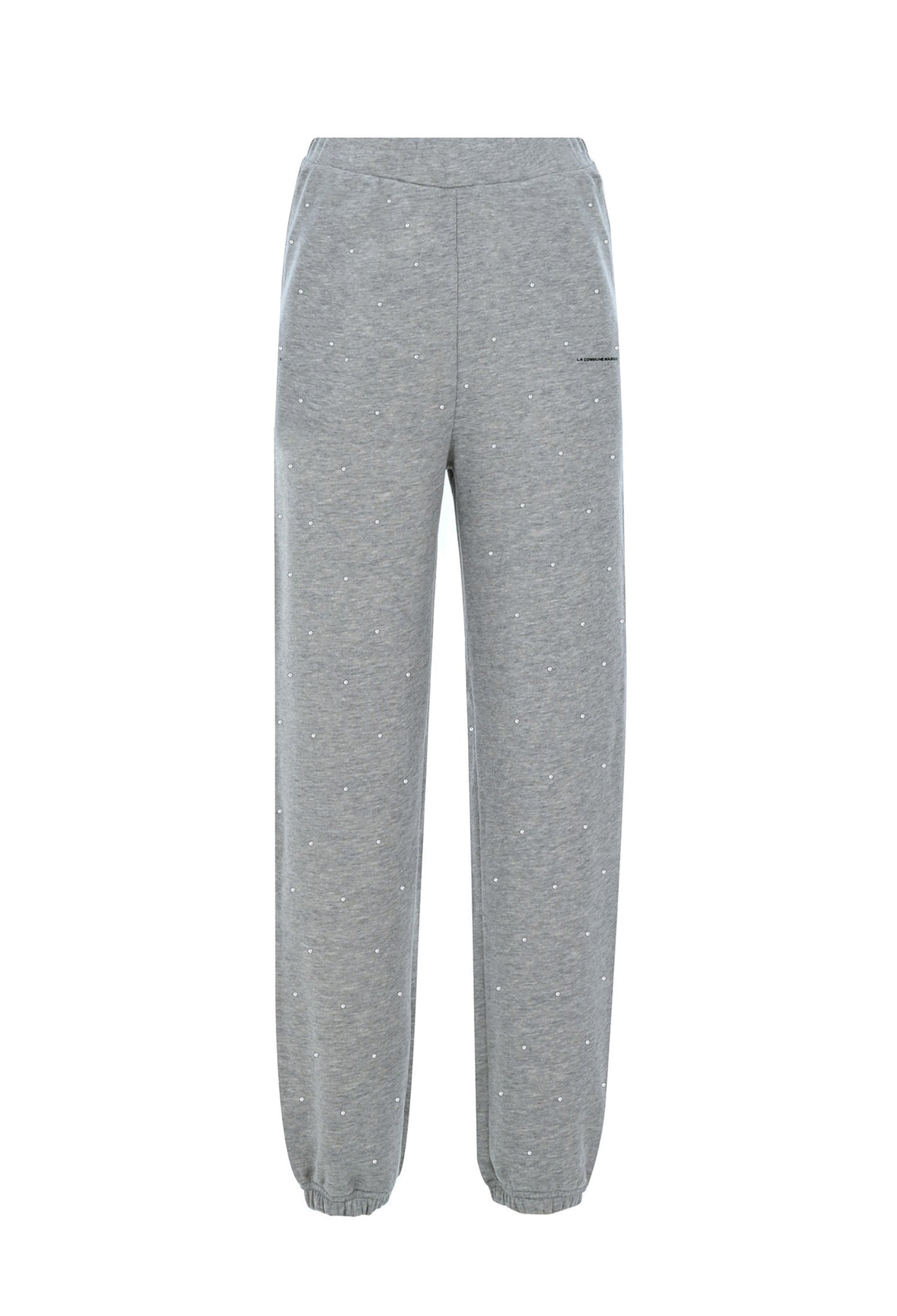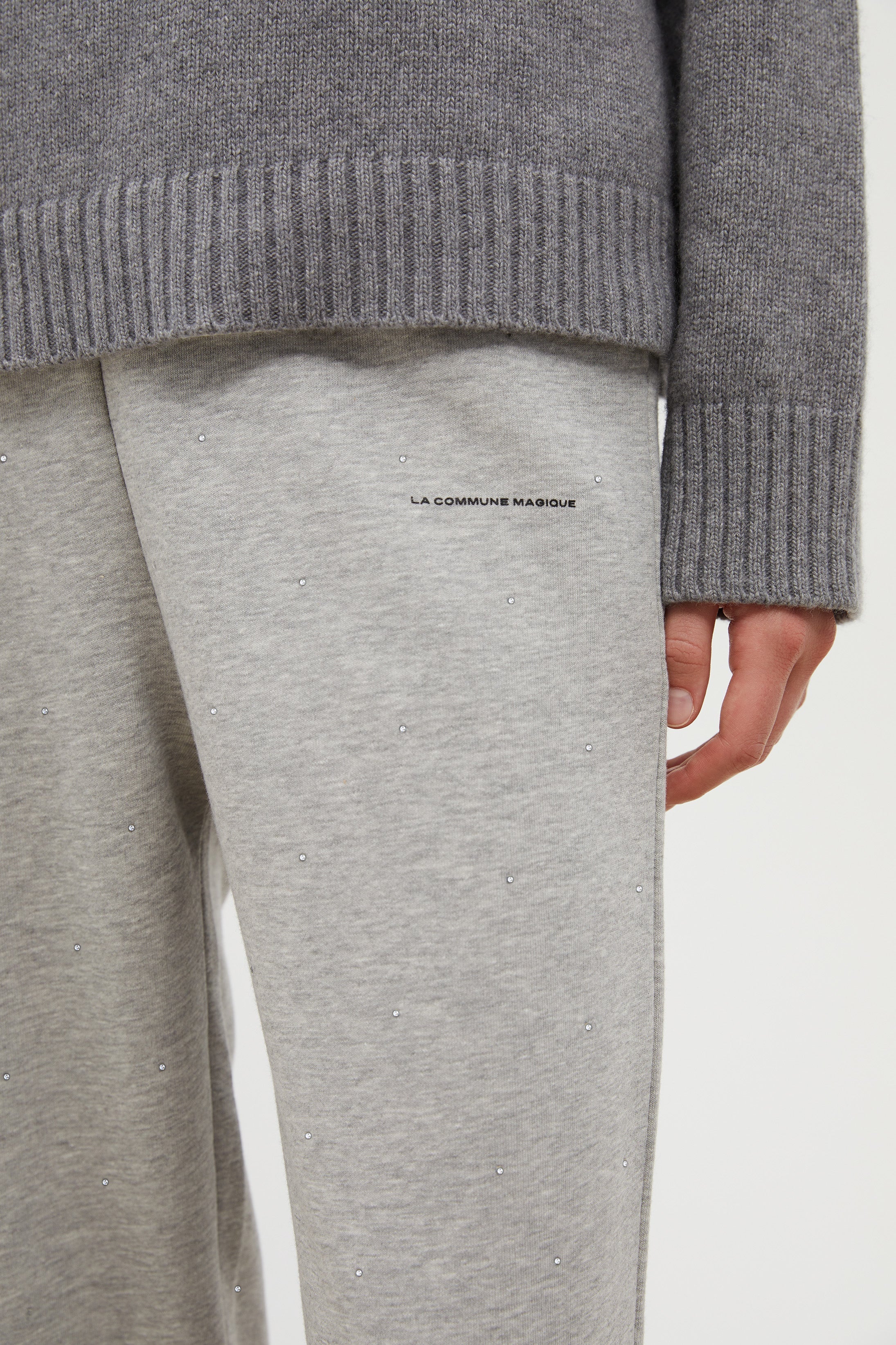 Light grey jewelled sweatpants with La Commune Magique branding detail, crafted from cotton blend.